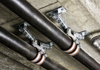 Vor der Auslegung der Gleitelemente steht die Wahl der Festpunkte. Sie fixieren die Rohrleitung an fest definierten Punkten und sorgen für eine definierte - und vor allem auch berechenbare - Ausdehnung des Leitungssystems. Festpunkte können auch gesetzt werden, um gerade Strecken in kürzere Teilabschnitte zu unterteilen und so für eine Dehnungsbegrenzung zu sorgen. Bei Steigleitungen haben sie die Aufgabe, das Eigengewicht der Rohrleitung aufzunehmen. Rohrschellen übernehmen in diesem Fall nur eine Führungsfunktion. Eine weitere wichtige Funktion von Festpunkten ist es, Schwingungen bzw. Vibrationen der Leitung zu minimieren und Druckschläge auszugleichen. Hierfür sind sie möglichst nahe an den Erzeuger der Störungen zu platzieren.