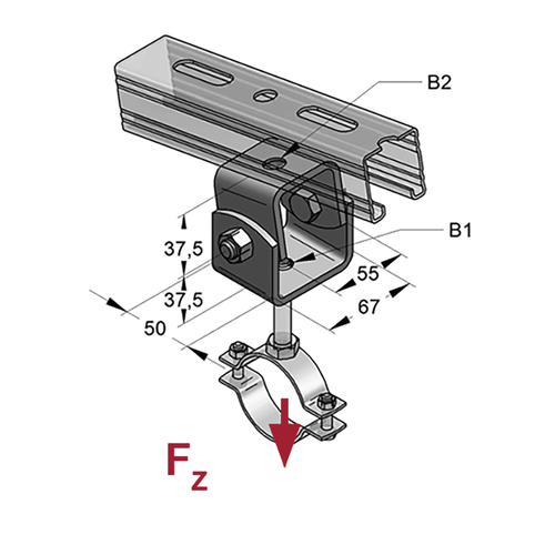 | Application area | Bracket for bracing threaded rods or on sloping roof and floor structures. |