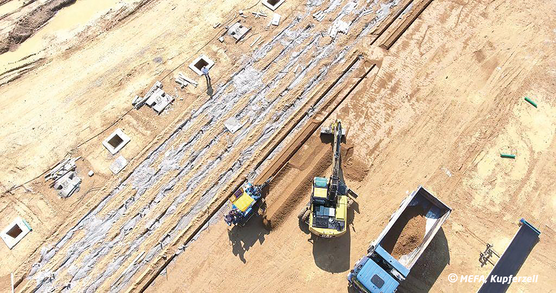 500 kW Einbau der Erdabsorber mit einer Grabenfräse