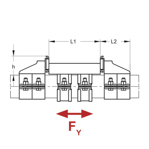 | Einsatzgebiet | Schallentkoppelter Festpunkt zum Klemmen an Stahl- oder Kunststoffrohre. |