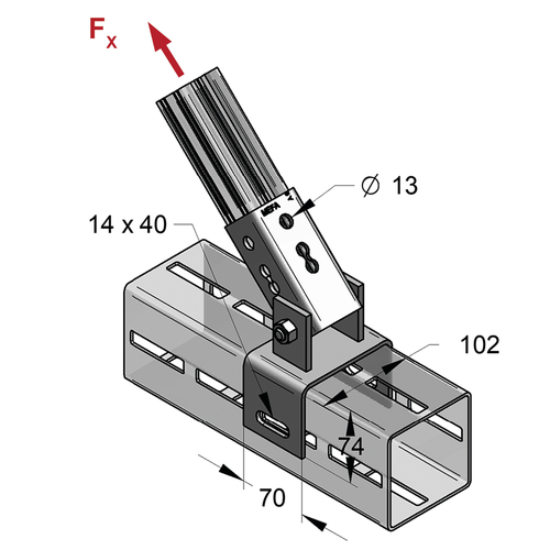 | Einsatzgebiet | Gelenkbauteil zur Verbindung eines Montageprofils CENTUM® in stufenlos verstellbarer Winkelstellung mit einer Montageschiene 45. |