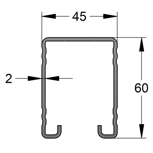 45 / 60 / 2 mm L= 6 m fbv